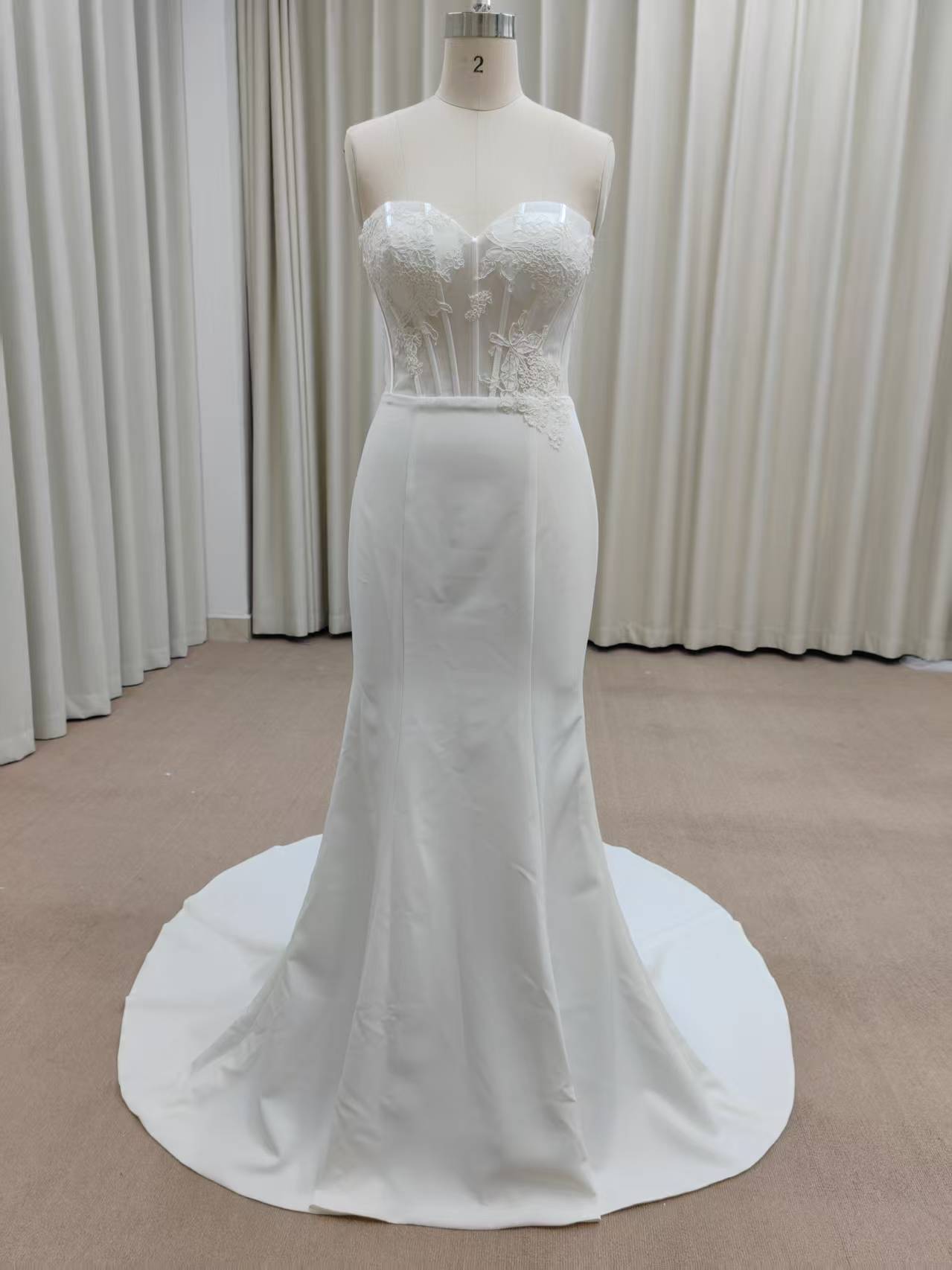 上品 ウェディングドレス マーメイドライン チュールレース ビスチェ シンプル