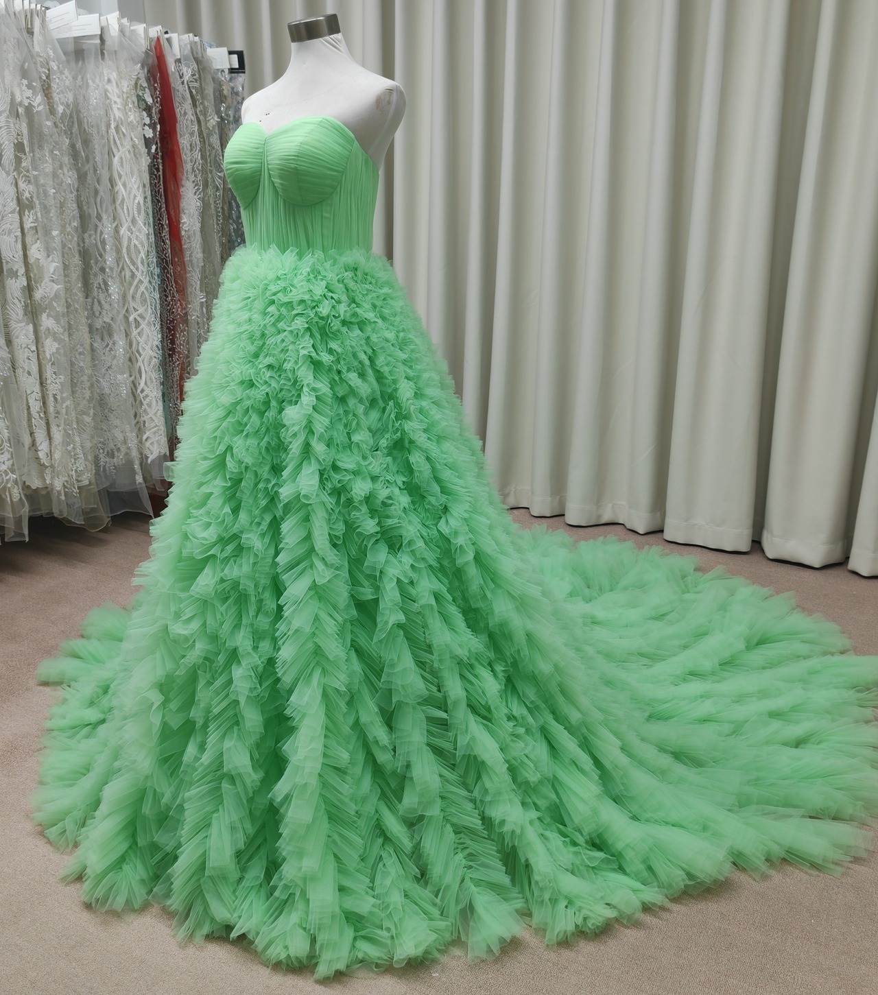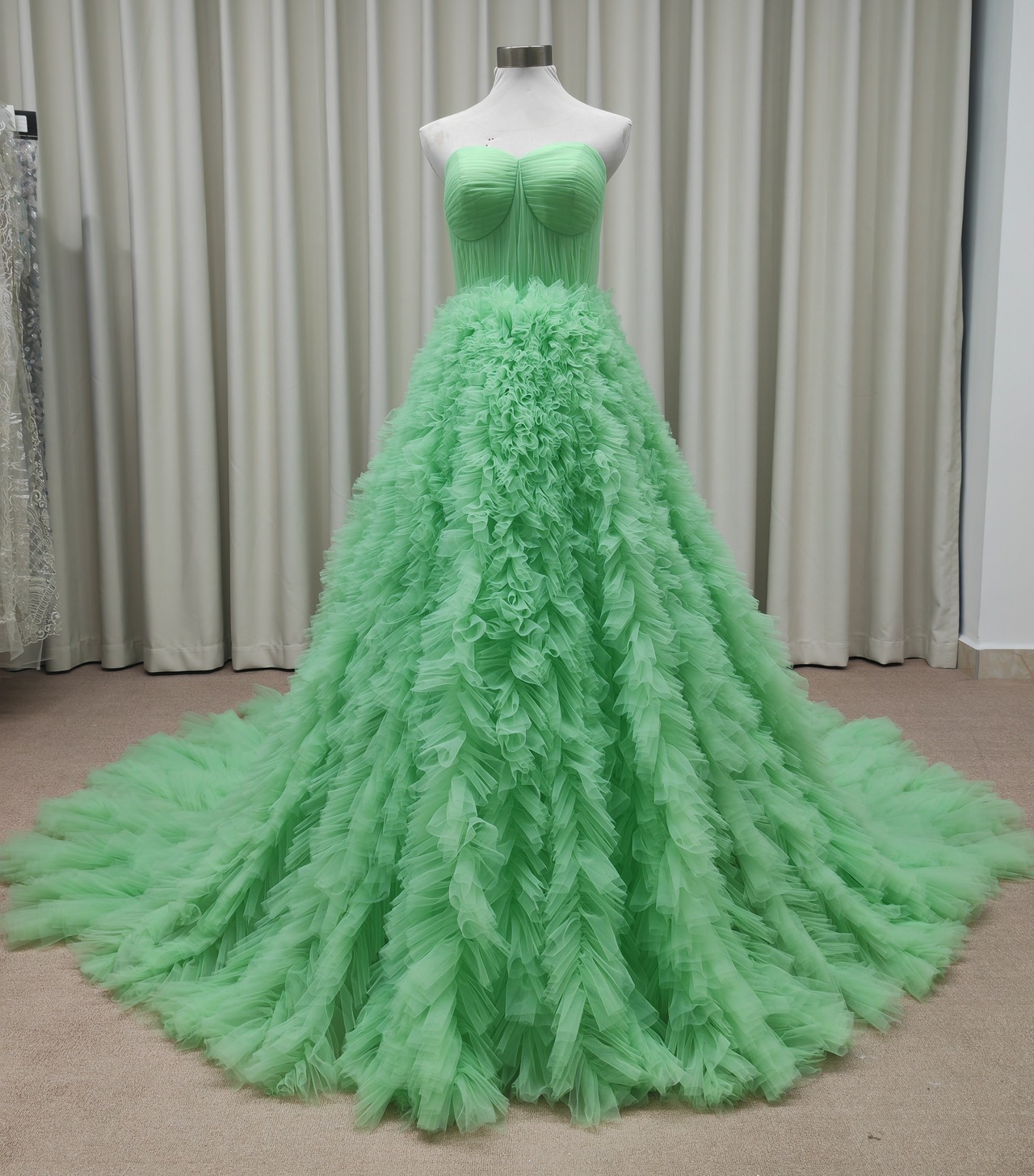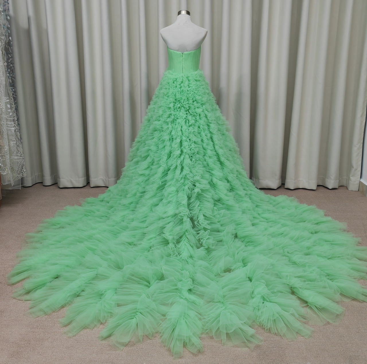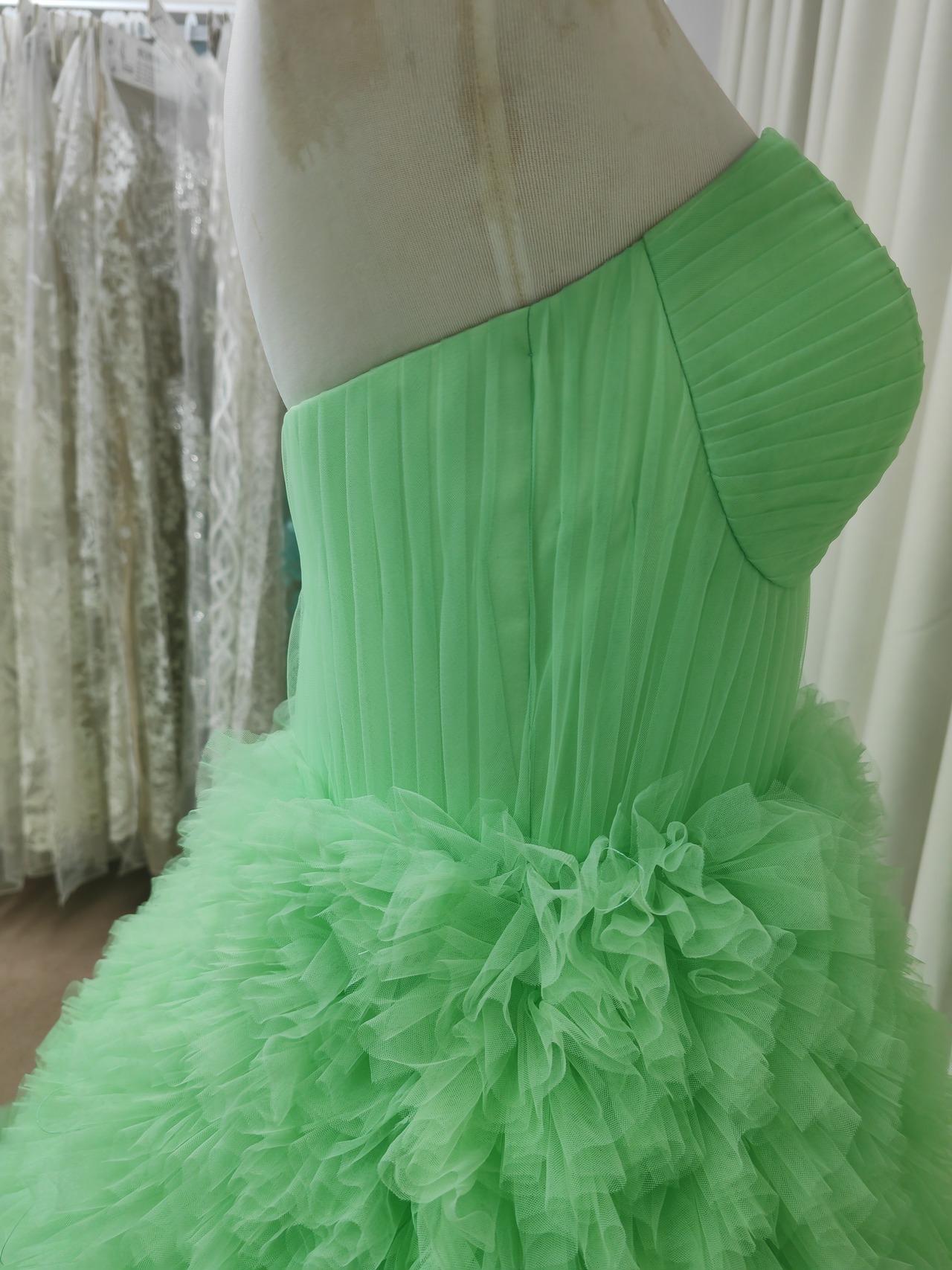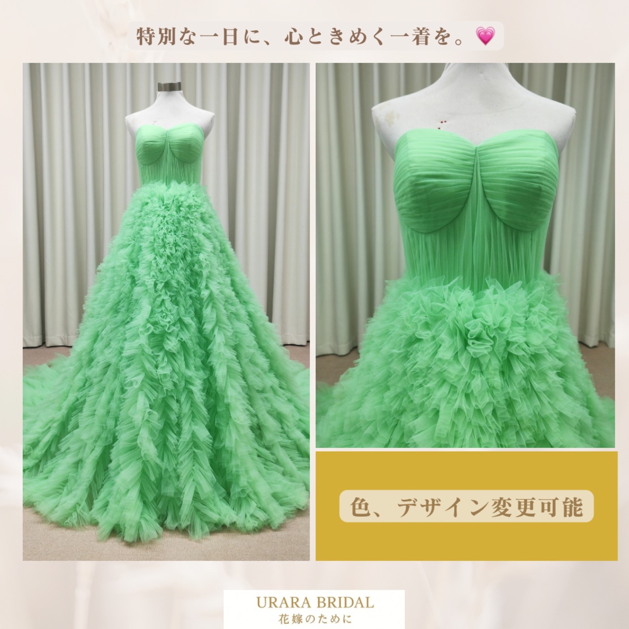 カラードレス グリーン ボリューム ストラップレス チュール ドレス 花嫁 前撮り