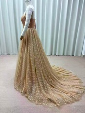 ② 着丈は身長と当日のヒールの高さに合わせて制作されていますので、確実な身長と当日のヒールの高さを教えてください。