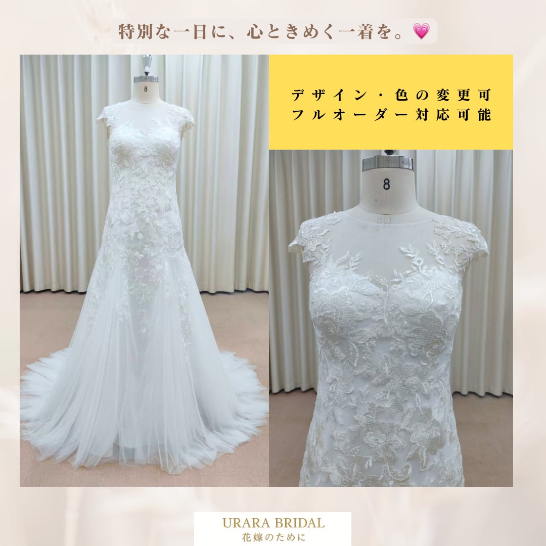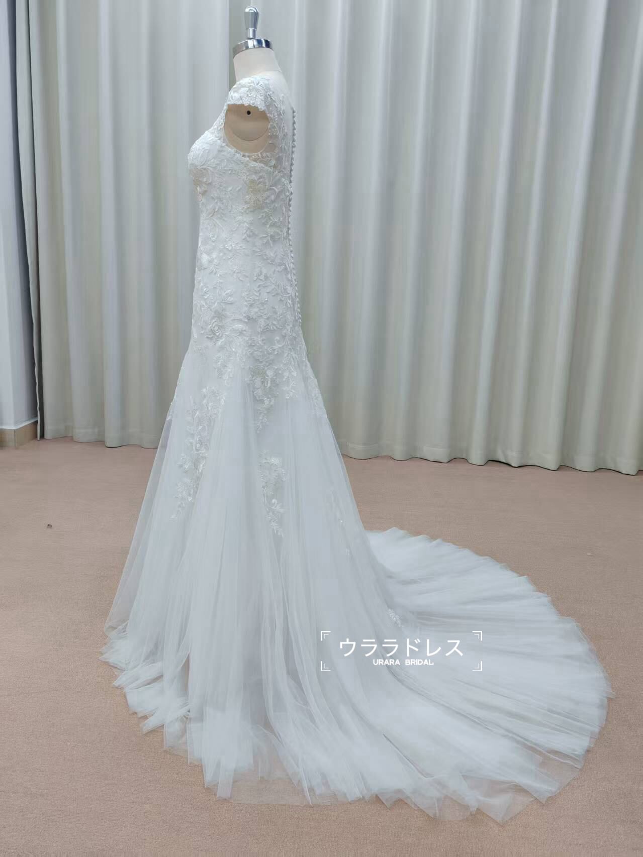 総レース マーメイドドレス|シアーバック×くるみボタン|上品トレーン