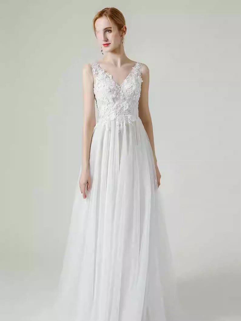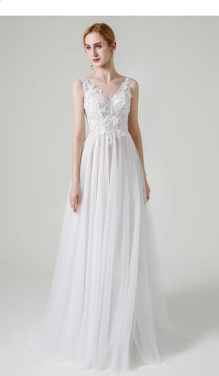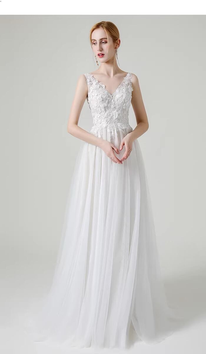 美背デザイン レースドレス 花嫁 ウェディング Vネック