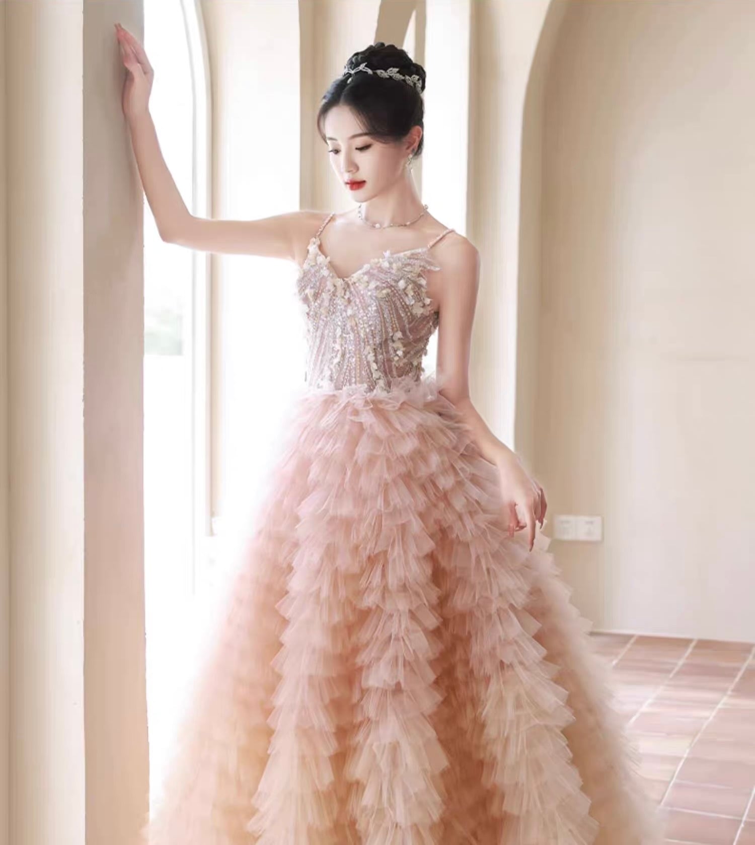 ボリューム感たっぷり チュールカラードレス|プリンセスライン|前撮り用
