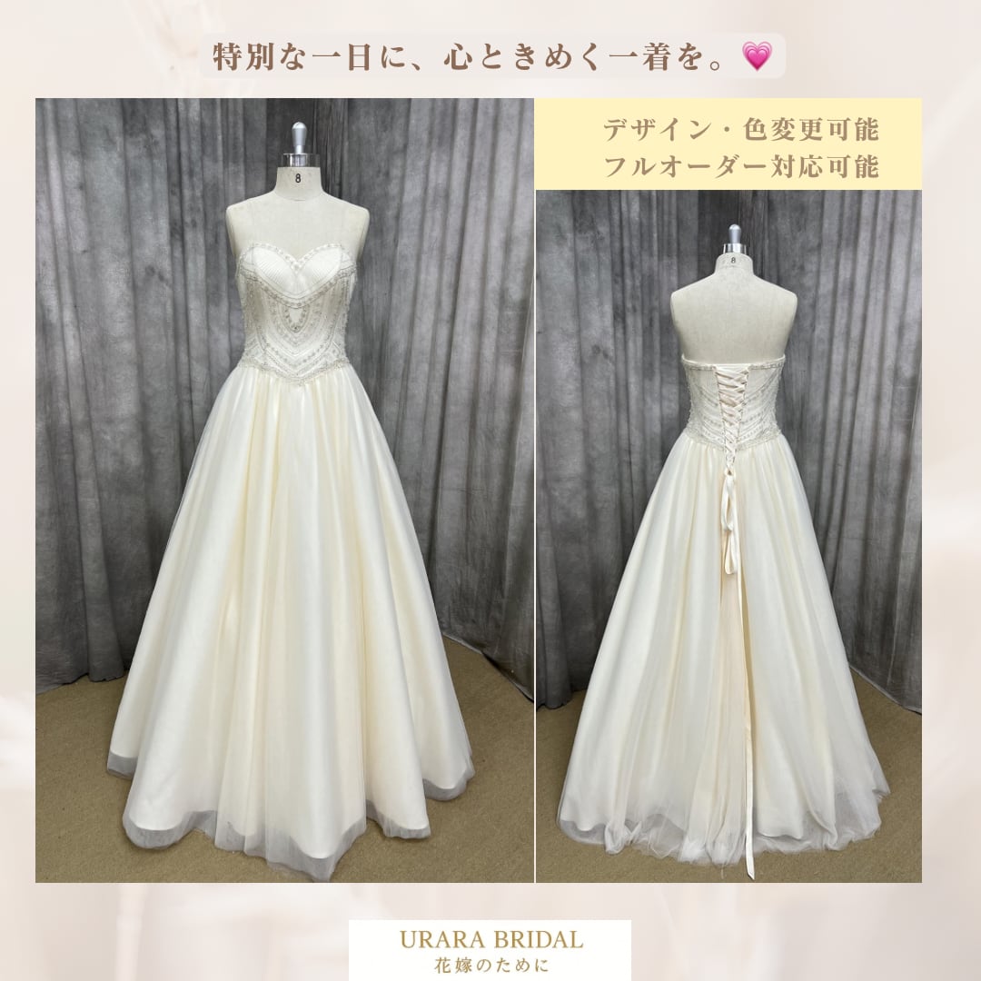アイボリーチュール ウェディング風ドレス|上品ビスチェ フルオーダー対応