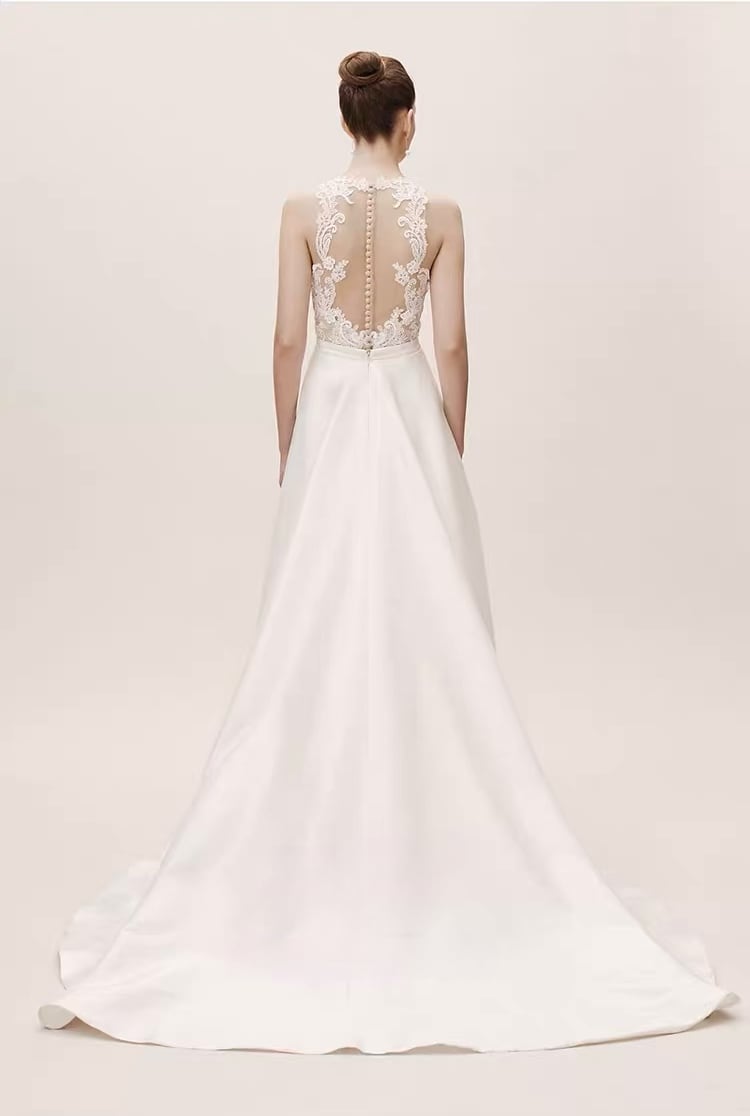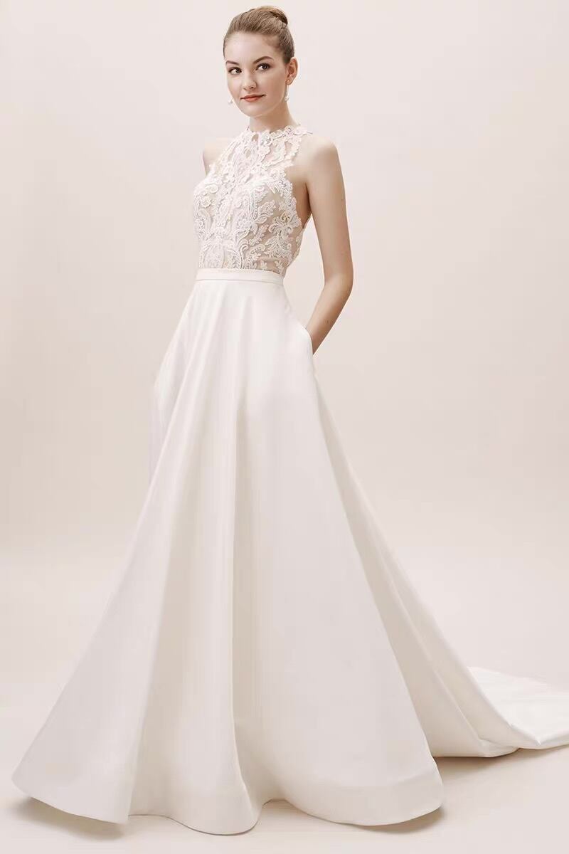 ウエディングドレス ハイネック レーストップ Aライン エレガント 花嫁 前撮り 二次会