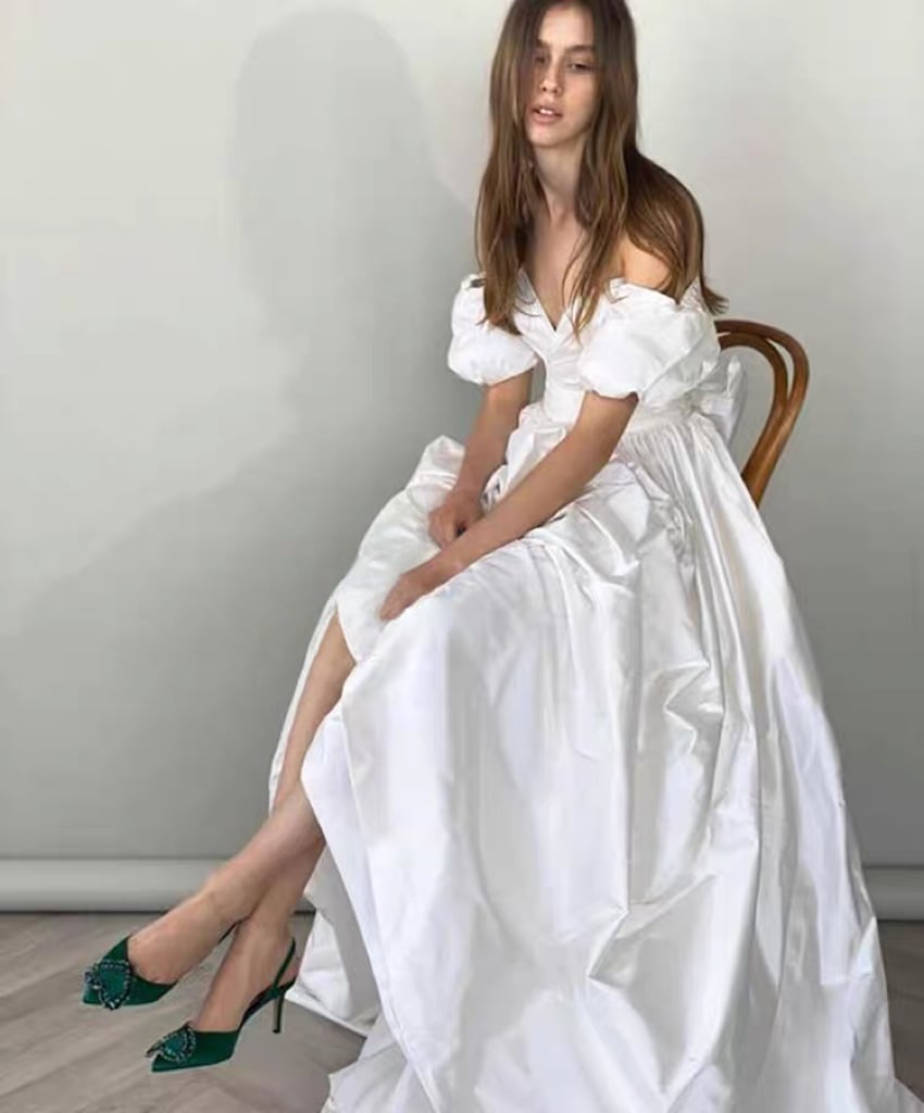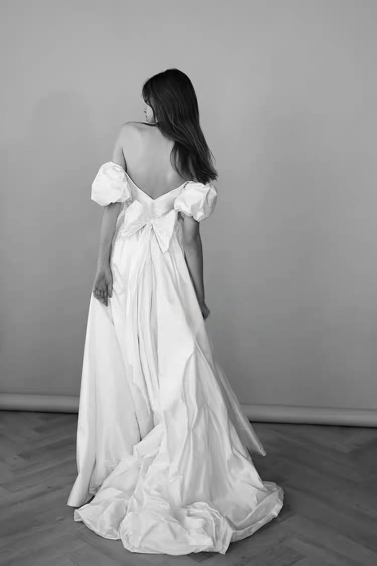 ウエディングドレス オフショルダー パフスリーブ Aライン ナチュラル 花嫁 前撮り 二次会