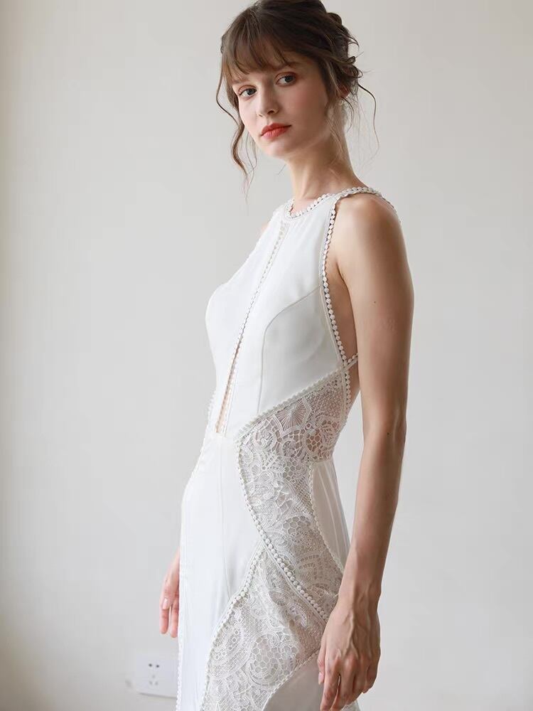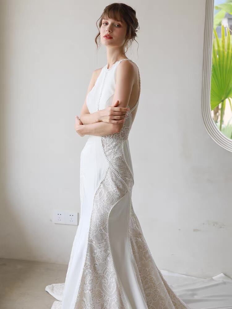 ウエディングドレス マーメイド シースルー バックオープン レース エレガント 花嫁 前撮り