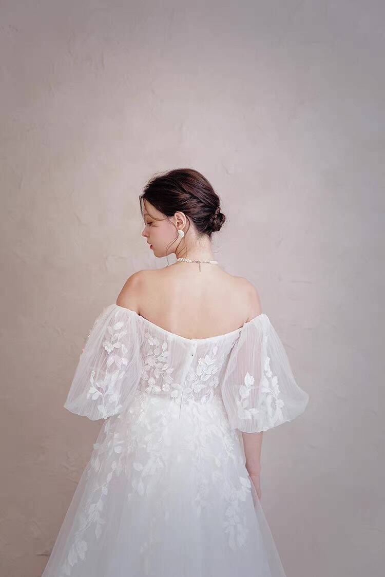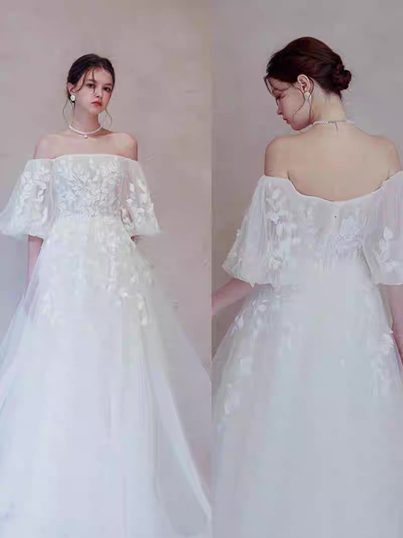 ウエディングドレス オフショルダー チュール Aライン フェミニン 花嫁 前撮り 二次会