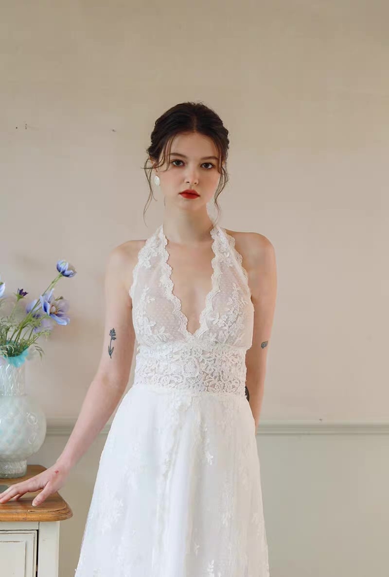 深Vネック レース キャミソール ウェディングドレス