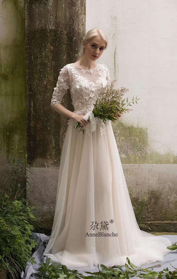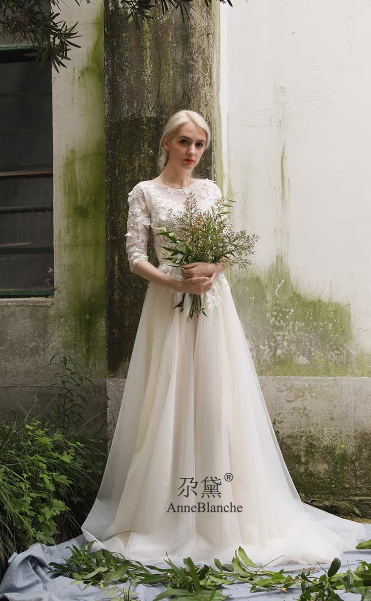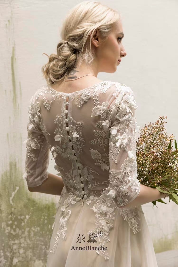 フレンチレース 五分袖 ナチュラル ウェディングドレス