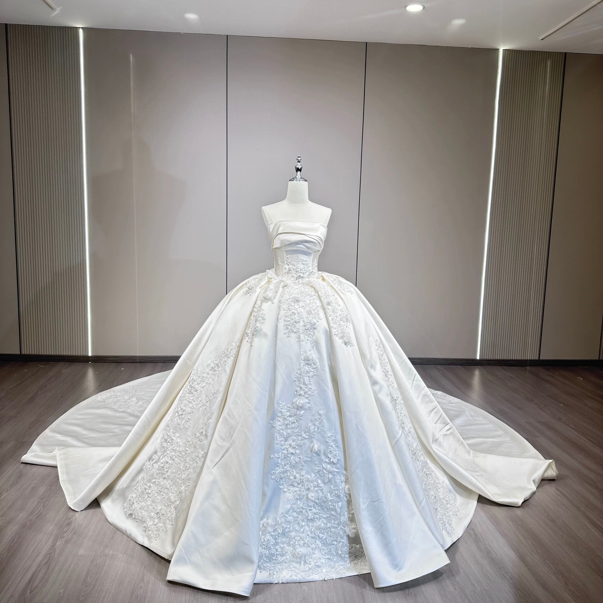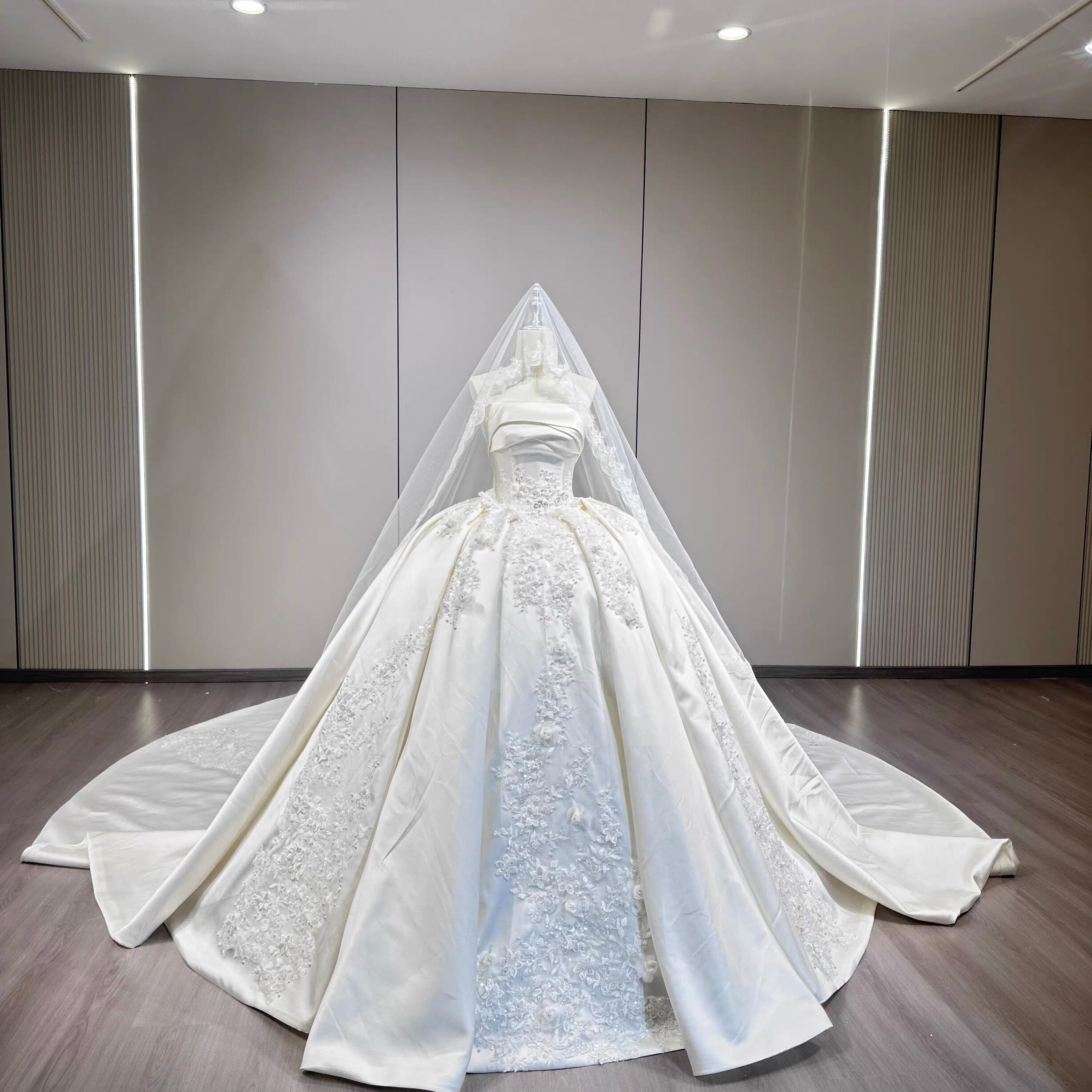 サテン プリンセスライン ウェディングドレス 上品 刺繍 シンプル クラシック