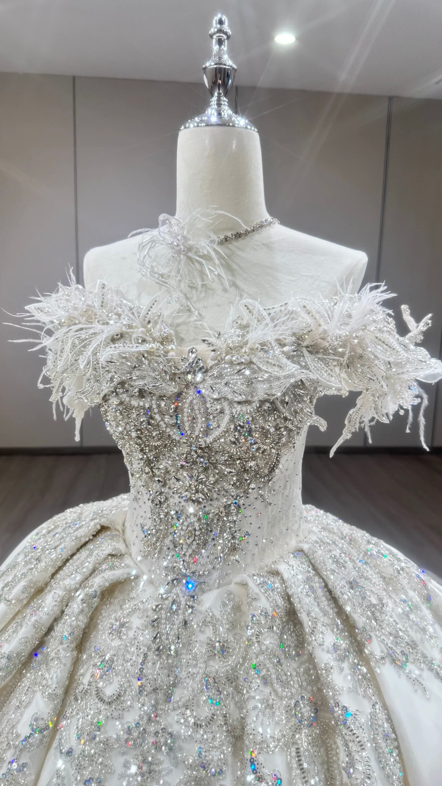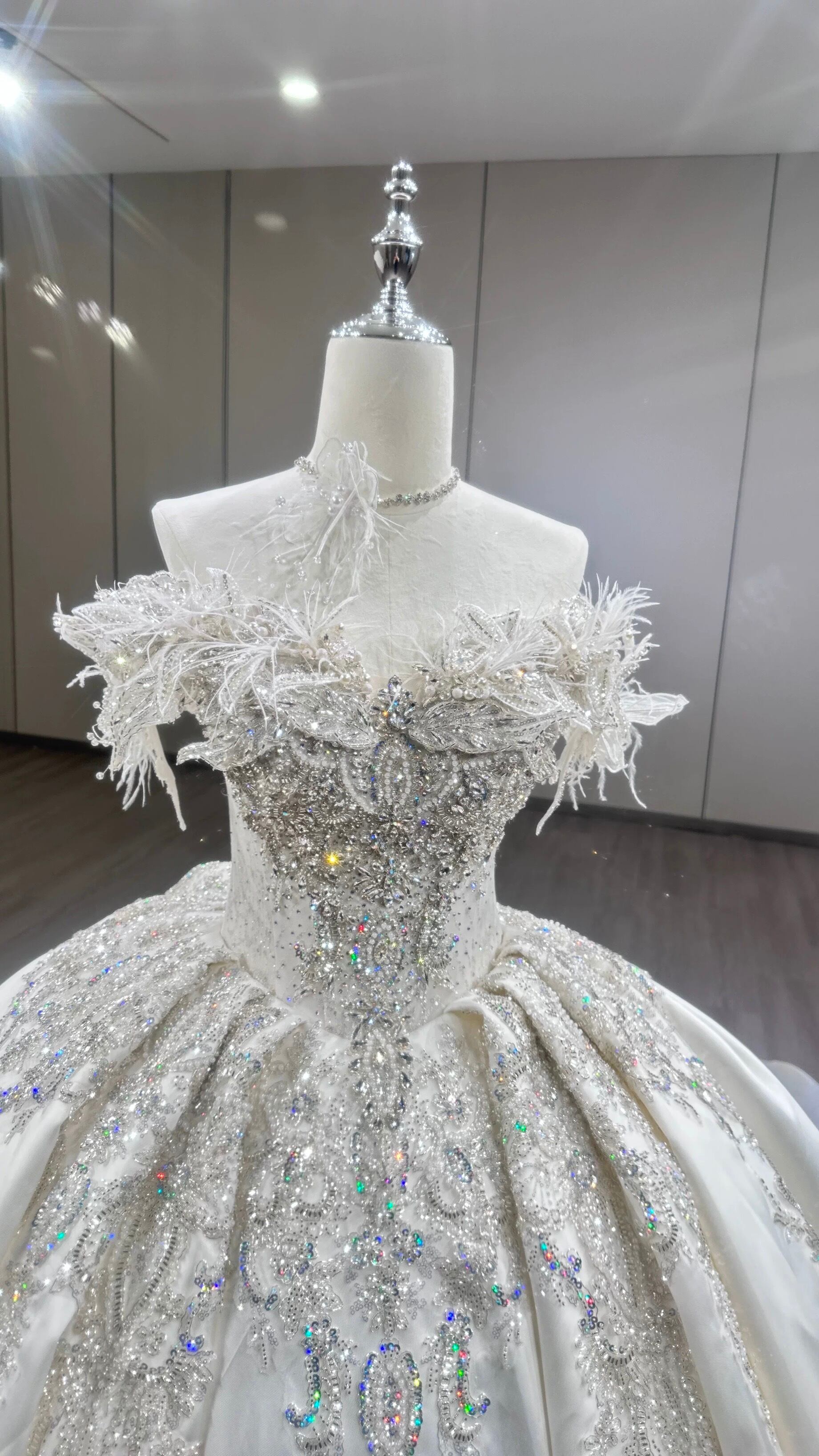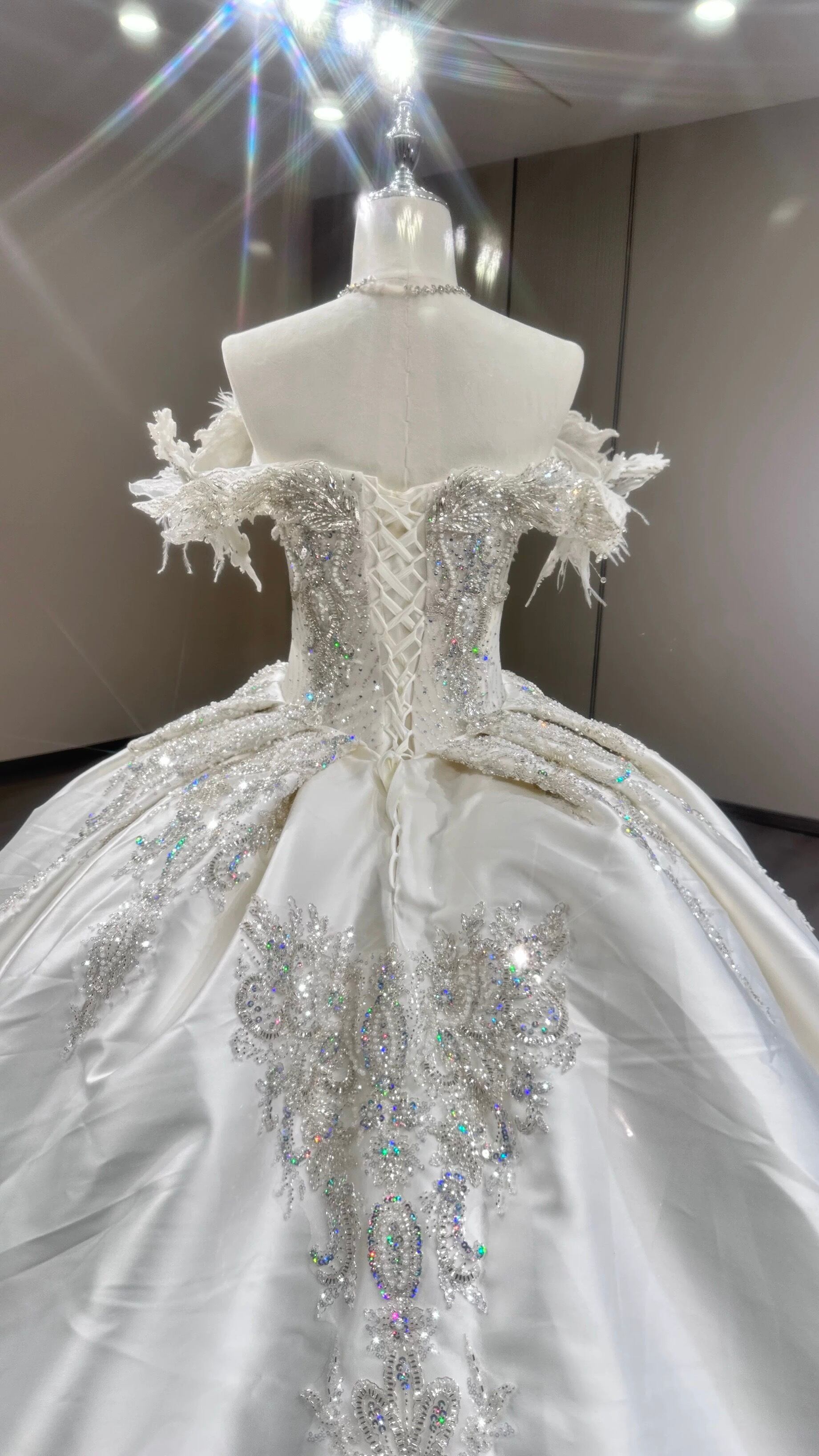 オフショルダー キラキラ ウェディングドレス ビジュー プリンセスライン