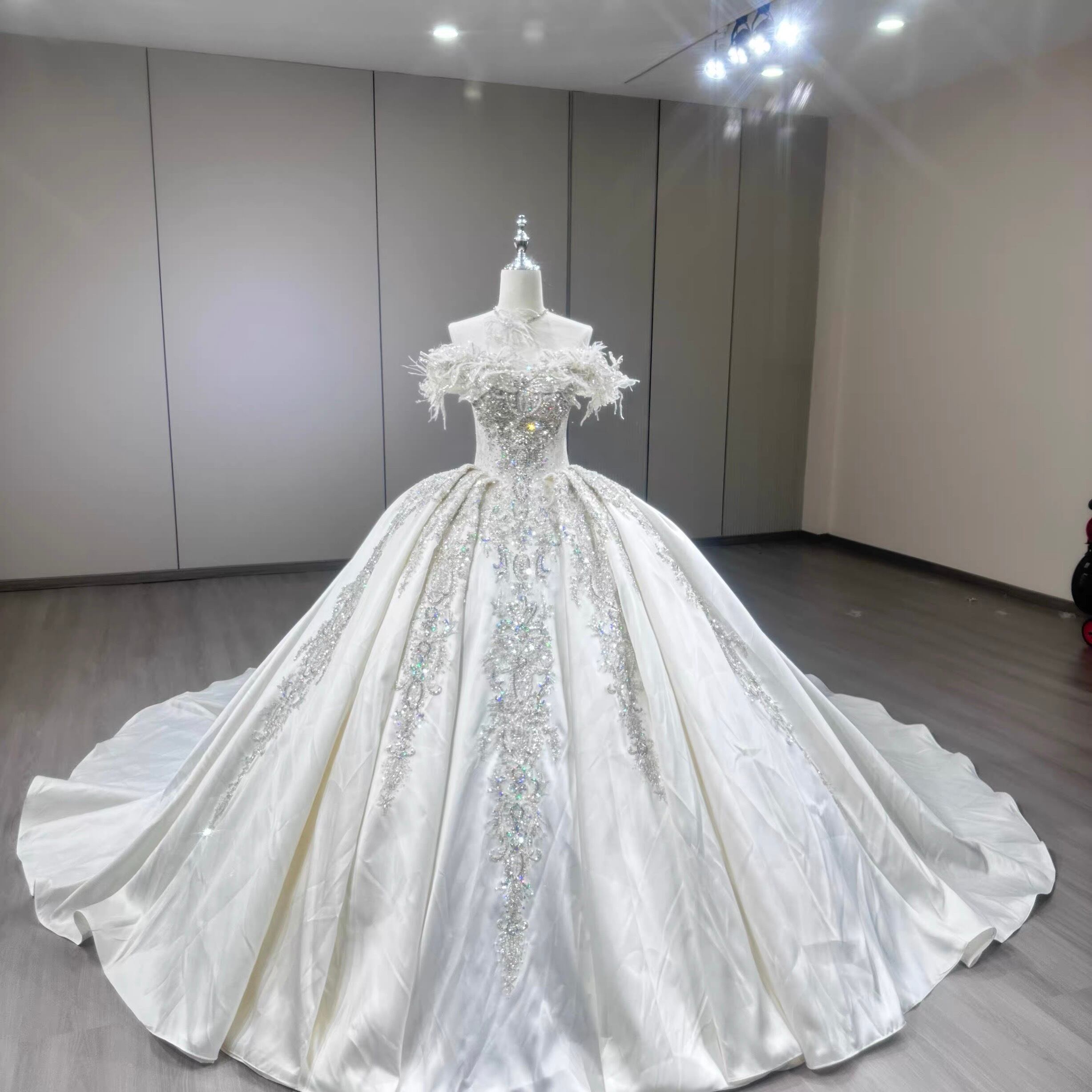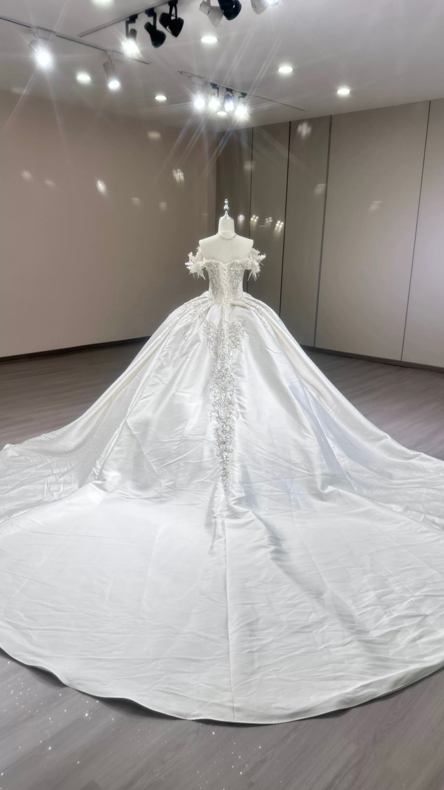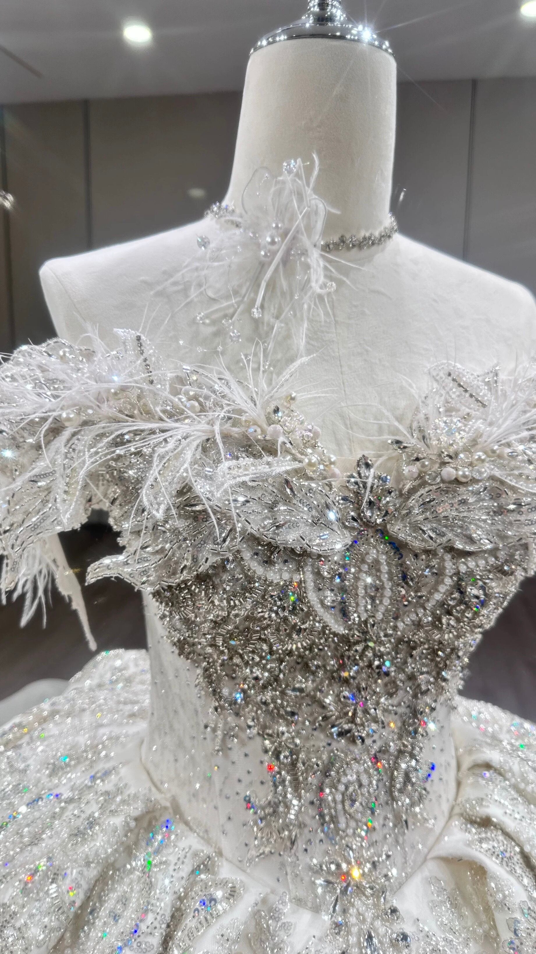 オフショルダー キラキラ ウェディングドレス ビジュー プリンセスライン