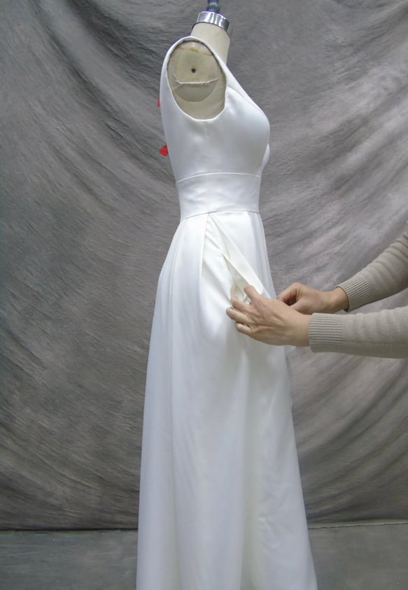 ノースリーブ サテン ポケット付き ウェディングドレス 前撮り 二次会