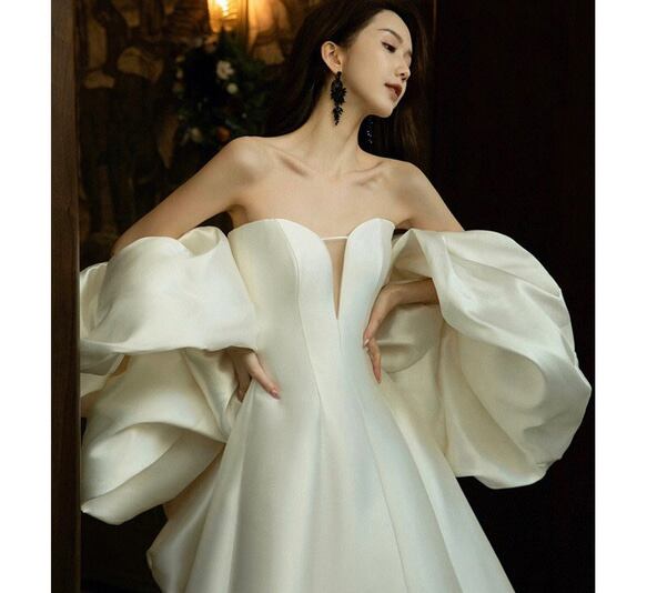 【お手持ちのドレスに合わせて】サテン ボリューム袖 色変更可能