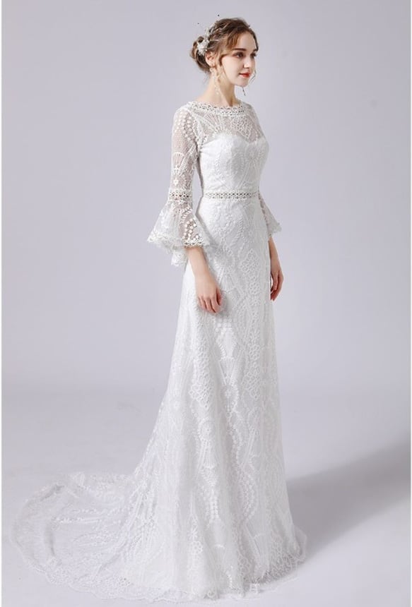 ロングスリーブ レースウエディングドレス 二次会 フォトウエディング