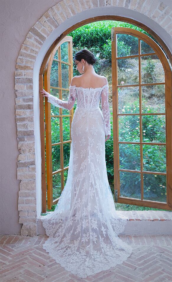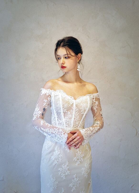 レース袖 ソフト オフショルダー マーメイドウエディングドレス