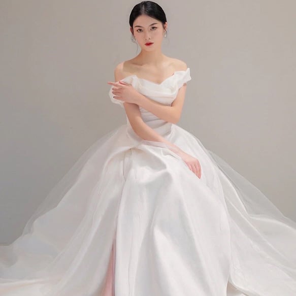 オフショルダー スリット入り ウエディングドレス
