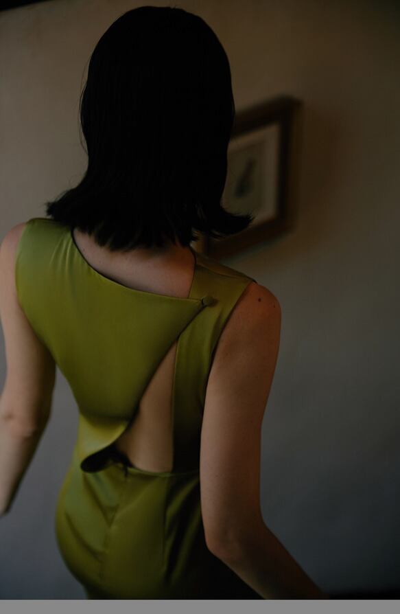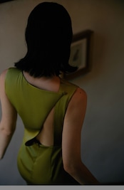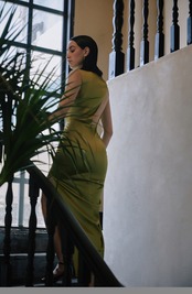 シンプルパーティドレス 演奏会 マスタードグリーン