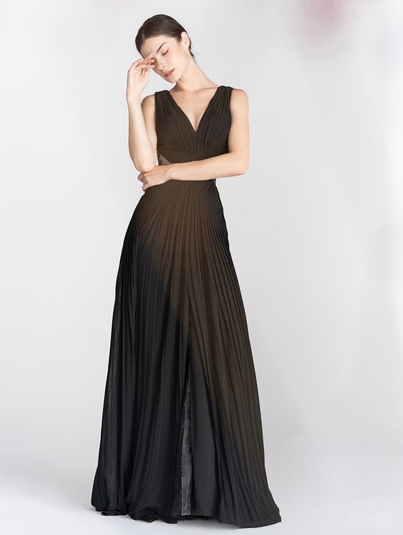 ノースリーブ Vネック ブラック バックレースウエディングドレス