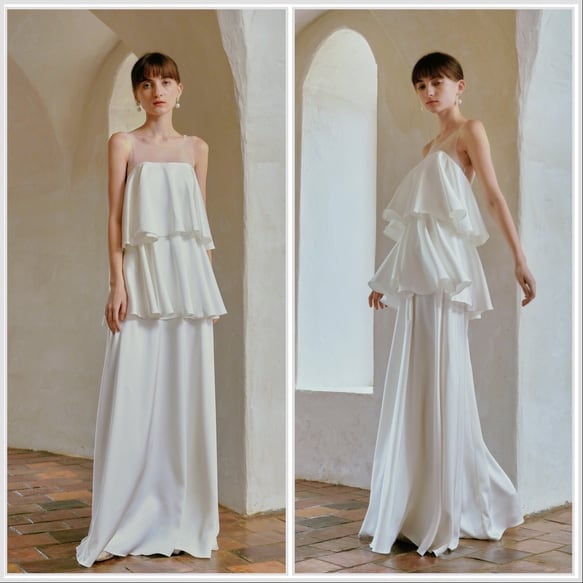 レトロ ウエディングドレス ティアード 二次会 前撮り 後撮り