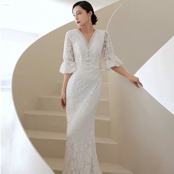 マーメイド ウエディングドレス Vネック