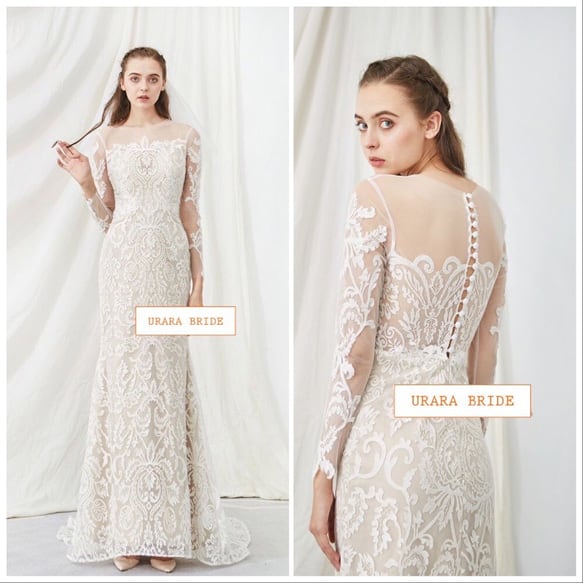 レース刺繍 背中くるみぼたんマーメイドウエディングドレス
