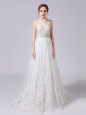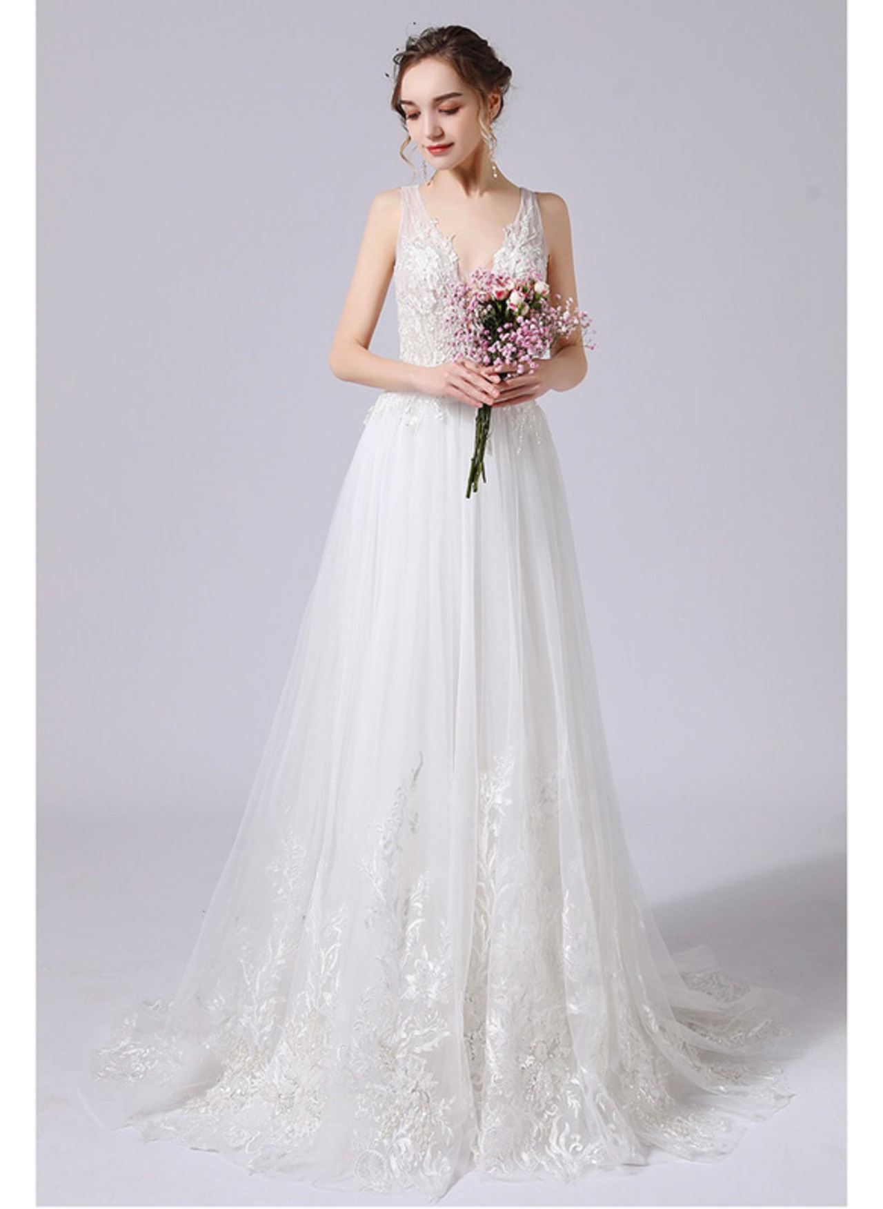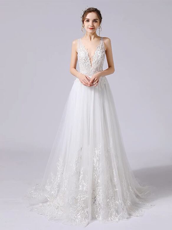 Vネック ノースリーブ ビジュー ウエディングドレス 二次会 フォト