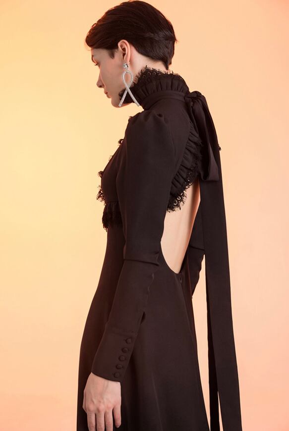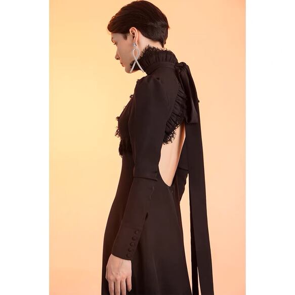 長袖 バックリボン ハイネック ブラックドレス 二次会 前撮り