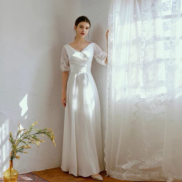 パフスリーブ Vネック ウエディングドレス フォトウエディング
