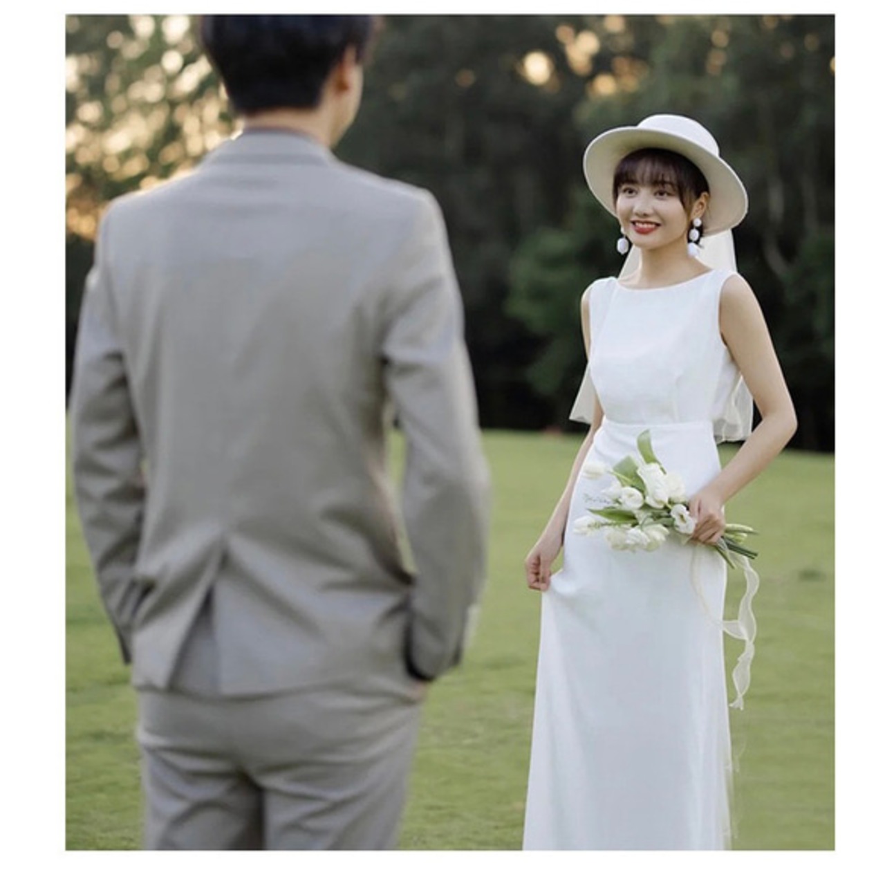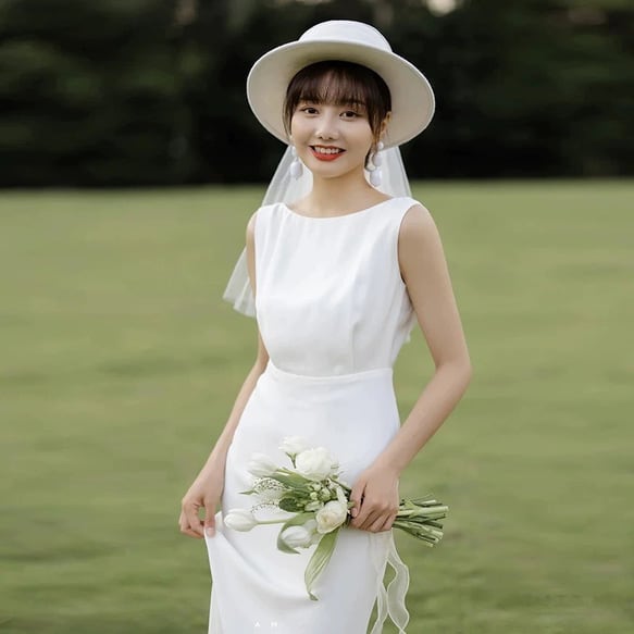 サテン ノースリーブ ソフトマーメイドウエディングドレス