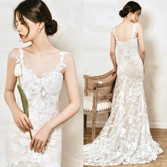 花柄刺繍 エレガント 総レース マーメイドウエディングドレス