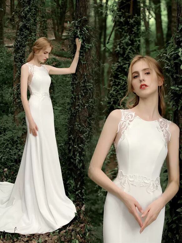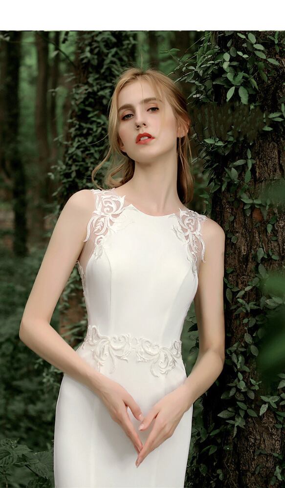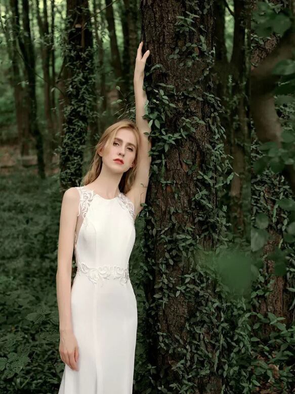 フィッシュテール Vネック ウエディングドレス 二次会 フォト