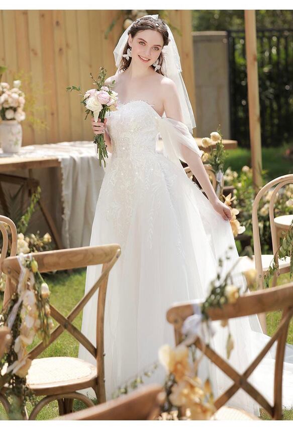 シンプル チューブトップ ウエディングドレス 前撮り 二次会