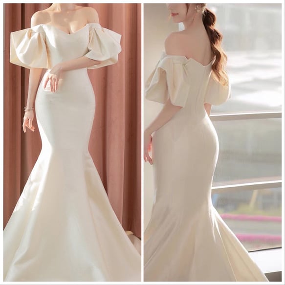 パフスリーブ オフショルダー マーメイドウエディングドレス