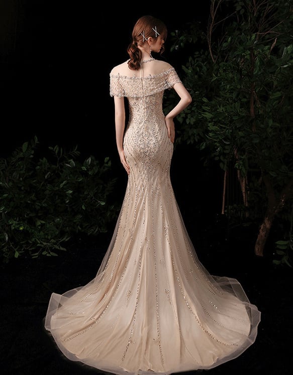 オフショルダー ビジューウエディングドレス