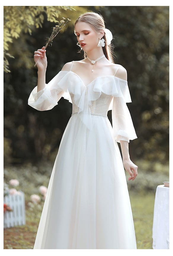 フレアオフショルダー ウエディングドレス ロケーションフォト
