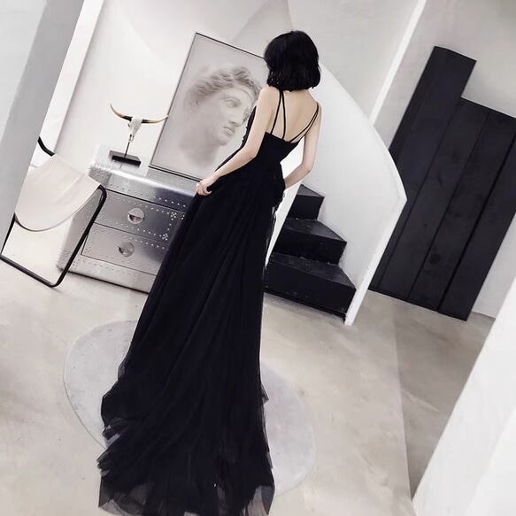 スパゲティストラップ ブラックドレス 二次会 前撮り 後撮り