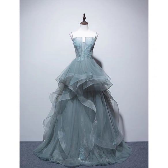 グリーンブルーロングドレス パーティードレス ウェディングドレス 二次会 演奏会 お嫁さん 発表会